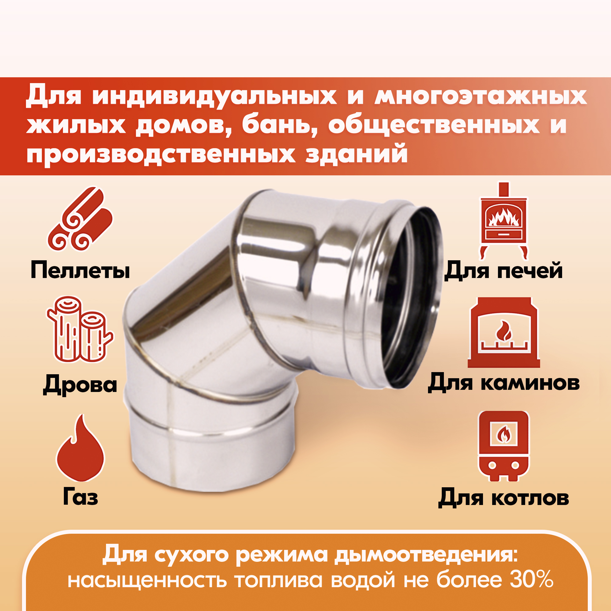 Отвод для дымохода обеспечивает герметичное соединение конструкции дымохода.