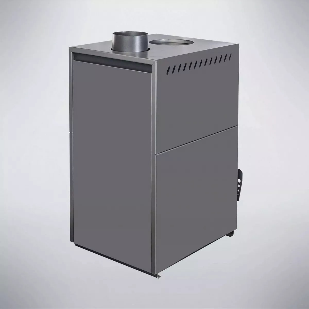 Регулятор подачи воздуха расположен в нижней части топочной дверцы, при смещении регулятора вправо или влево происходит подача или перекрытие воздуха в зону колосника.