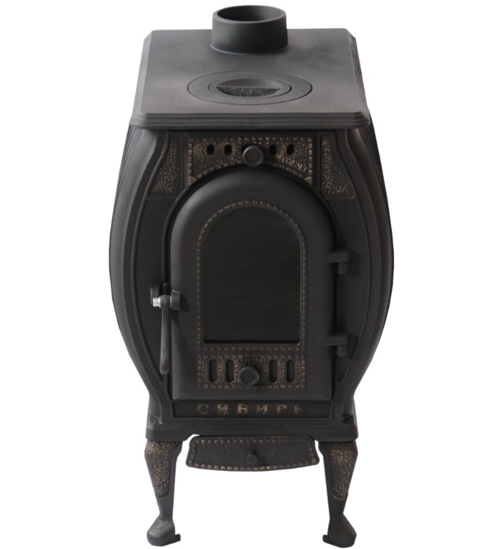 Чугунная отопительно-варочная печь «Сибирь» создана в качестве продолжения линейки чугунных печей-каминов «Сибирь», выпускаемых заводом «НМК». Печь имеет простую и надежную конструкцию, позволяющую отапливать бытовые и хозяйственные помещения объемом до 120 м3. Печь выполнена из серого чугуна марки СЧ10-СЧ20, который представляет собой оптимальный сплав, сочетающий в себе доступность с одной стороны и долговечность с другой. Конструктивные особенности печи заключаются в наличии варочной поверхности с отверстием для конфорок, что позволяет использовать данную печь для приготовления пищи, сочетая это с отоплением загородного дома. Наличие в панорамной топочной дверце термостойкого шнура обеспечивает ее герметичное запирание и исключает доступ воздуха между дверцей и передней стенкой печи. Также следует отметить, что все элементы данной печи являются чугунными (за исключением подзольного и зольного ящиков), что значительно увеличивает срок службы.