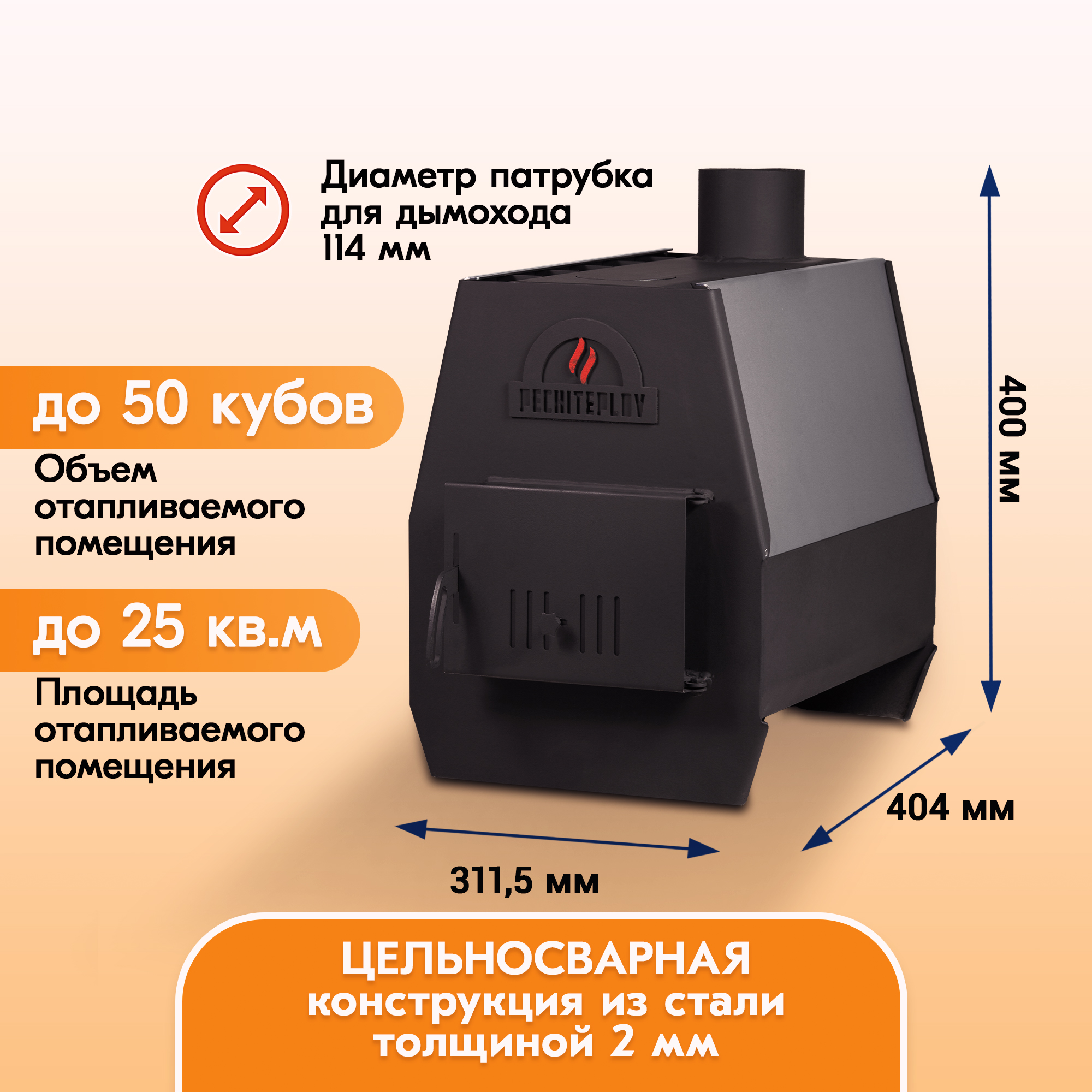 Компактная и экономичная печь PECHITEPLOV на 50 или 80 кубов не намного дороже обычной печи буржуйки, но при этом на порядок лучше.