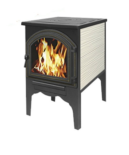 Верхнюю горизонтальную поверхность можно использовать для приготовления пищи. Печь укомплектована чугунным колосником и чугунной негерметичной дверцей Везувий ДТ-4. Печь облицована керамической плиткой для лучшего распределения тепла.
